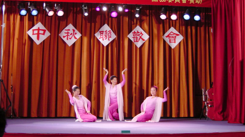 On September 29, 2002, during the traditional Chinese mid-Autumn Festival celebration, the French Falun Dafa Association hosted a celebration party at the Paris Chinese Culture and Education Center. Over 200 guests from all circles attended the event. After the performances show, video programs about Falun Gong were shown. While the guests had dinner, practitioners talked with them and further clarified the truth about Falun Gong. Below are some of the photos of the performances.