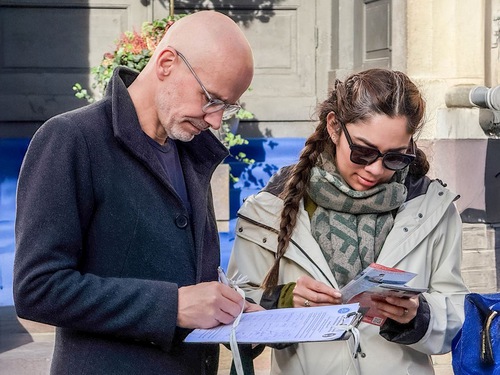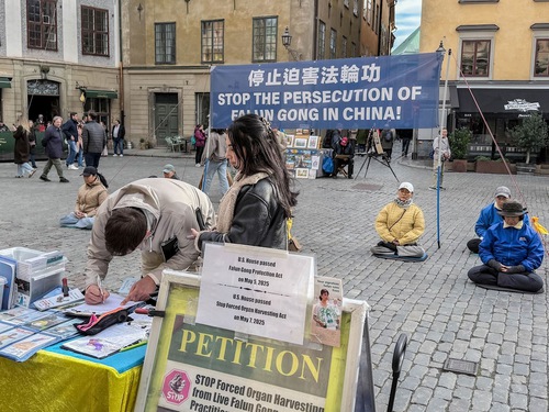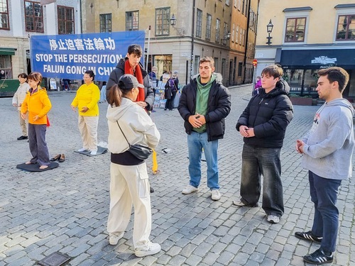 (Minghui.org) From Fridays to Sundays over two weeks in October 2025, Falun Dafa practitioners in Stockholm held a series of events near the Nobel Museum to raise awareness about Falun Dafa and how the Chinese Communist Party (CCP) is persecuting this peaceful spiritual practice from China.
