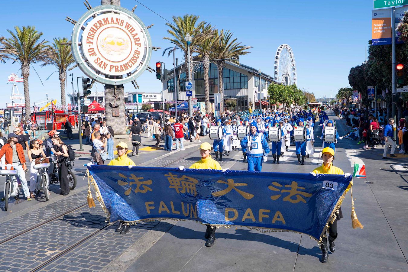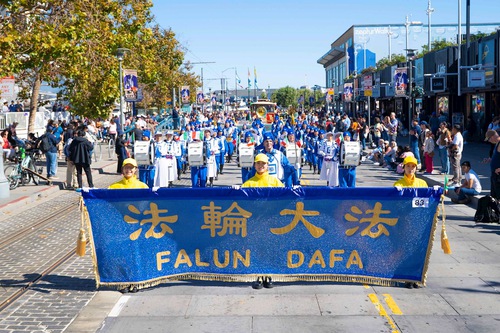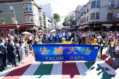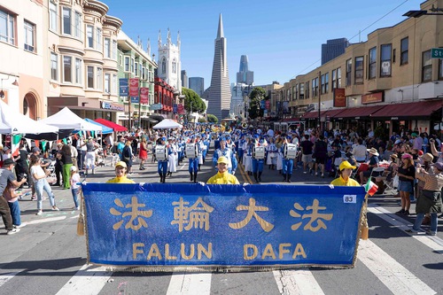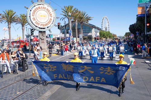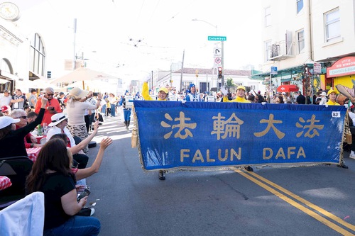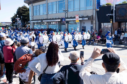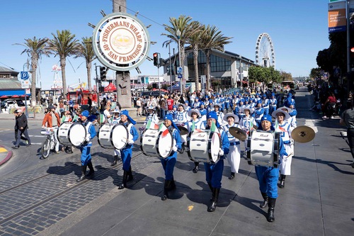 (Minghui.org) The Falun Dafa group's Tian Guo Marching Band participated in the Italian Heritage Parade in San Francisco on October 12, 2025.