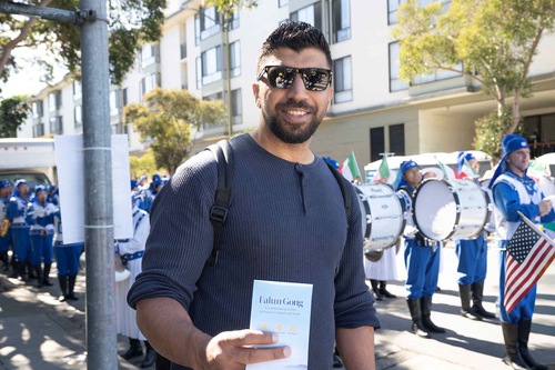 Mohammad from Palestine said he was captivated by the music performed by the Tian Guo Marching Band. He said that if both Palestine and Israel adhered to the principles of Truthfulness, Compassion, and Forbearance, there would be no war. “This is my first time in San Francisco, and the band’s performance is fantastic. Truthfulness, Compassion, and Forbearance are great, and I believe everyone should have a kind heart.”
