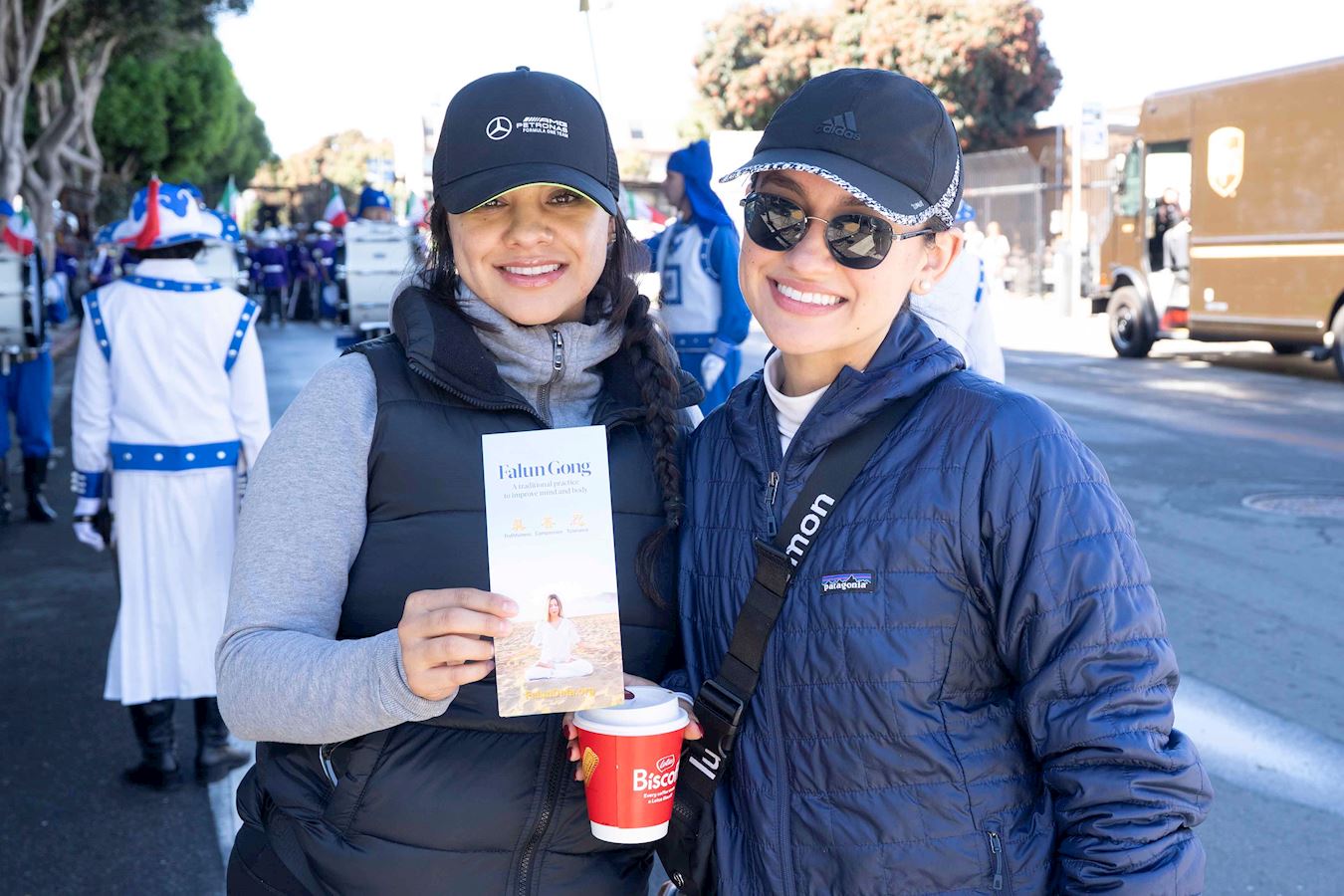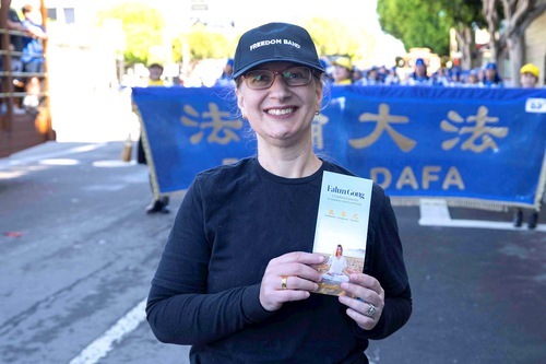 Seeing a Falun Gong flyer, she exclaimed, “This is a meditation practice! Truthfulness, Compassion, and Forbearance—I love it. I’m from Sacramento, and I wish to join your band. Are there Falun Gong practitioners in Sacramento?”