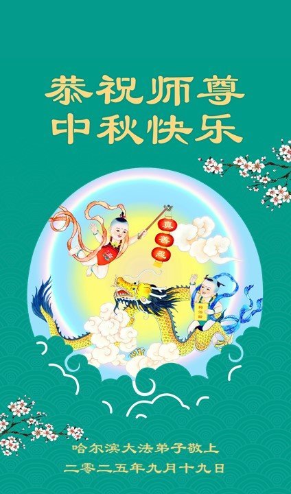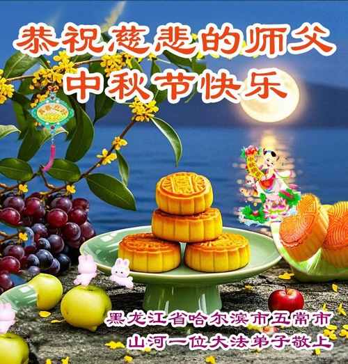 Falun Dafa Practitioners in Harbin City Respectfully Wish Master Li Hongzhi a Happy Mid-Autumn Festival (18 Greetings)