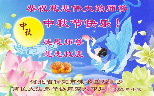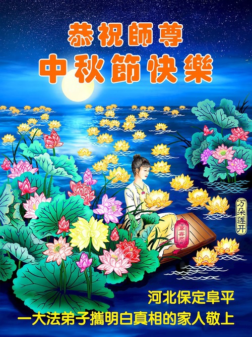 Falun Dafa Practitioners in Baoding City Respectfully Wish Master Li Hongzhi a Happy Mid-Autumn Festival (19 Greetings)
