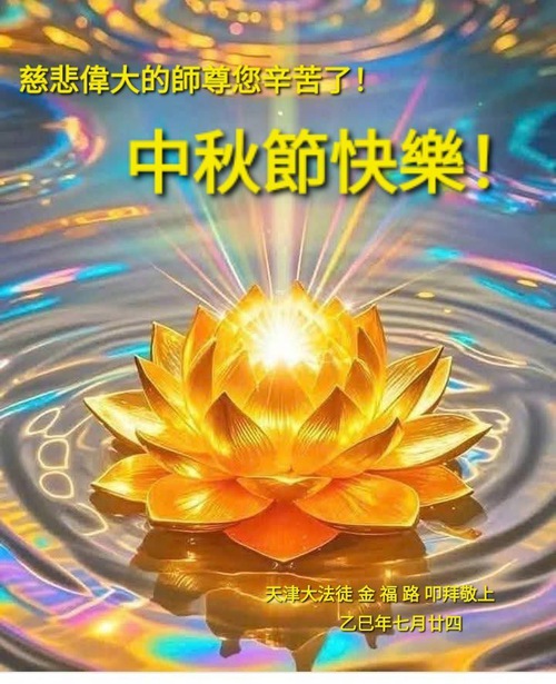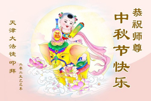 Falun Dafa Practitioners from Tianjin Wish Revered Master a Happy Mid-Autumn Festival!