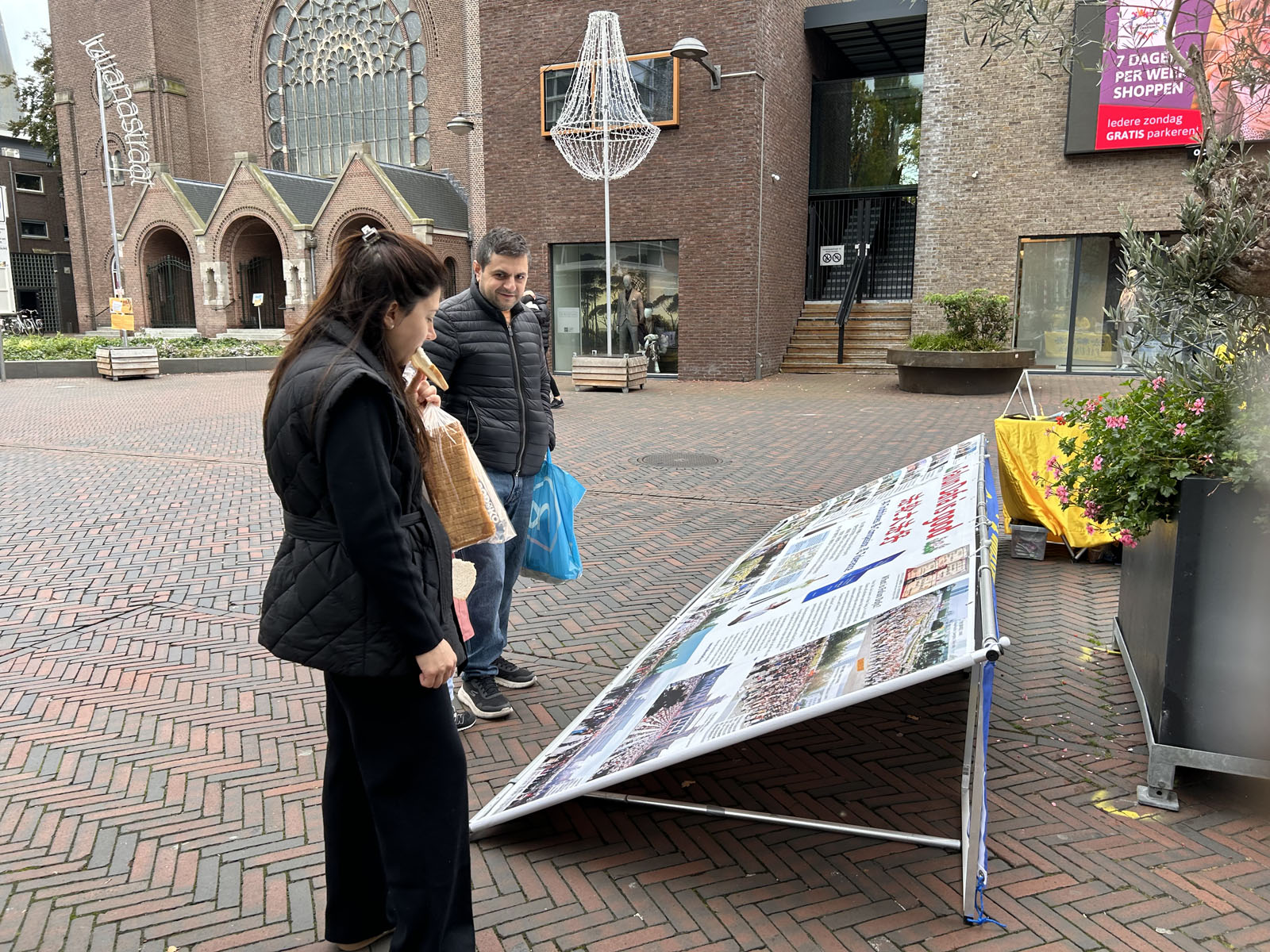 (Minghui.org) A touring information day event arrived in Alphen aan den rijn, a town in southern Netherlands, on October 11, 2025, to tell people about Falun Dafa and raise awareness of the Chinese Communist Party’s (CCP) persecution.