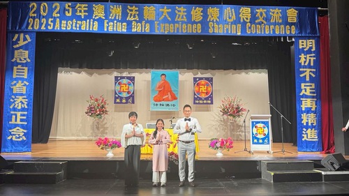 (Minghui.org) The 2025 Australia Falun Dafa Experience Sharing Conference was held on October 12 at the Hurstville Entertainment Centre Auditorium in Sydney. Several young Australian Falun Dafa practitioners who attended the conference talked about their understandings after listening to other practitioners’ speeches. They said they were deeply inspired and could clearly see their own shortcomings. They expressed their hope to strive for improvement, persevere in cultivation, and return to their origins with Master.