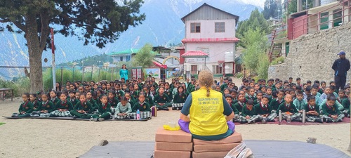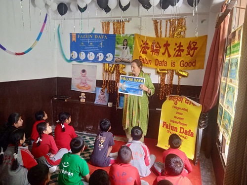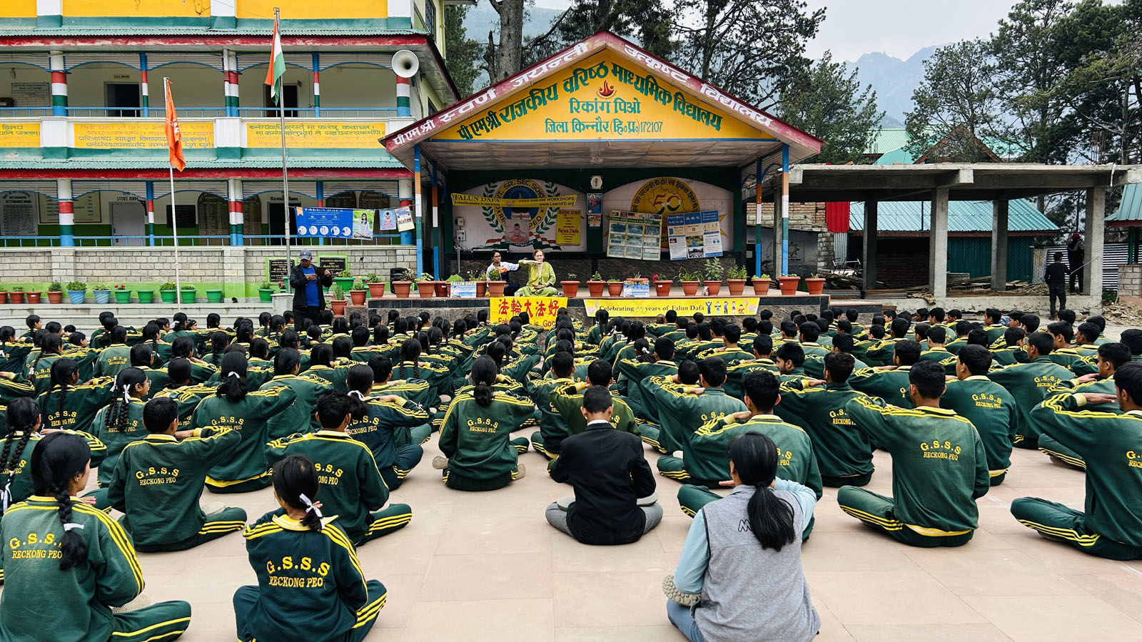 The practitioner contacted local schools and community organizations and held introductory sessions about Falun Dafa. She brought books, magazines, flyers, bookmarks, posters, and other informational materials that introduced the practice. These materials also cover the persecution in China by the Chinese Communist Party (CCP). During this trip, she was able to hold introductory sessions at 13 schools and a boxing club for children, and she also visited the regions of Reckong Peo, Sangla, Nichar, and Ponda.