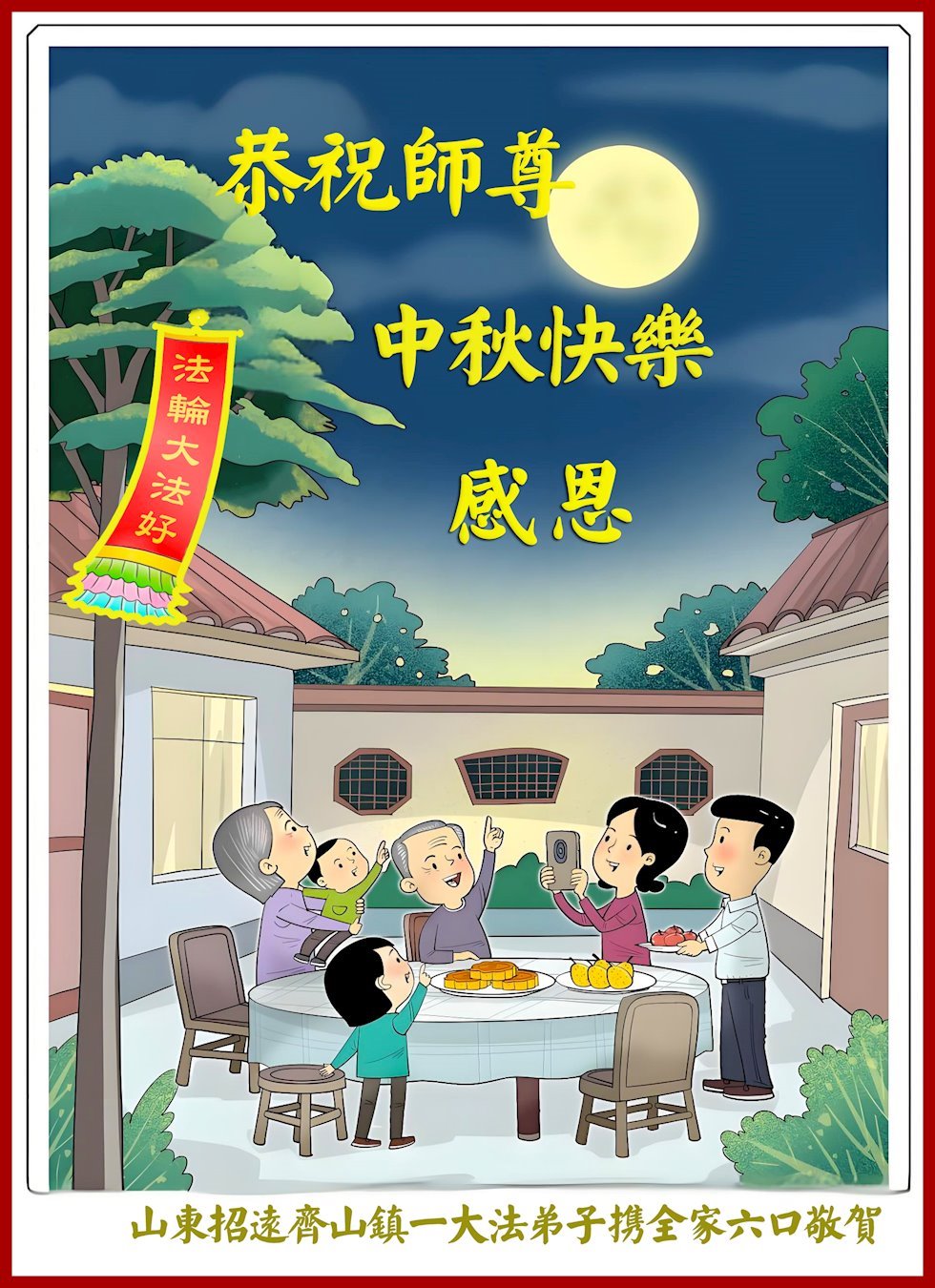 Falun Dafa Practitioners in Shandong Province Respectfully Wish Master Li Hongzhi a Happy Mid-Autumn Festival (18 Greetings)