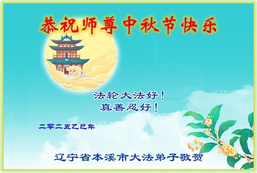 Falun Dafa Practitioners from Benxi City Wish Revered Master a Happy Mid-Autumn Festival!