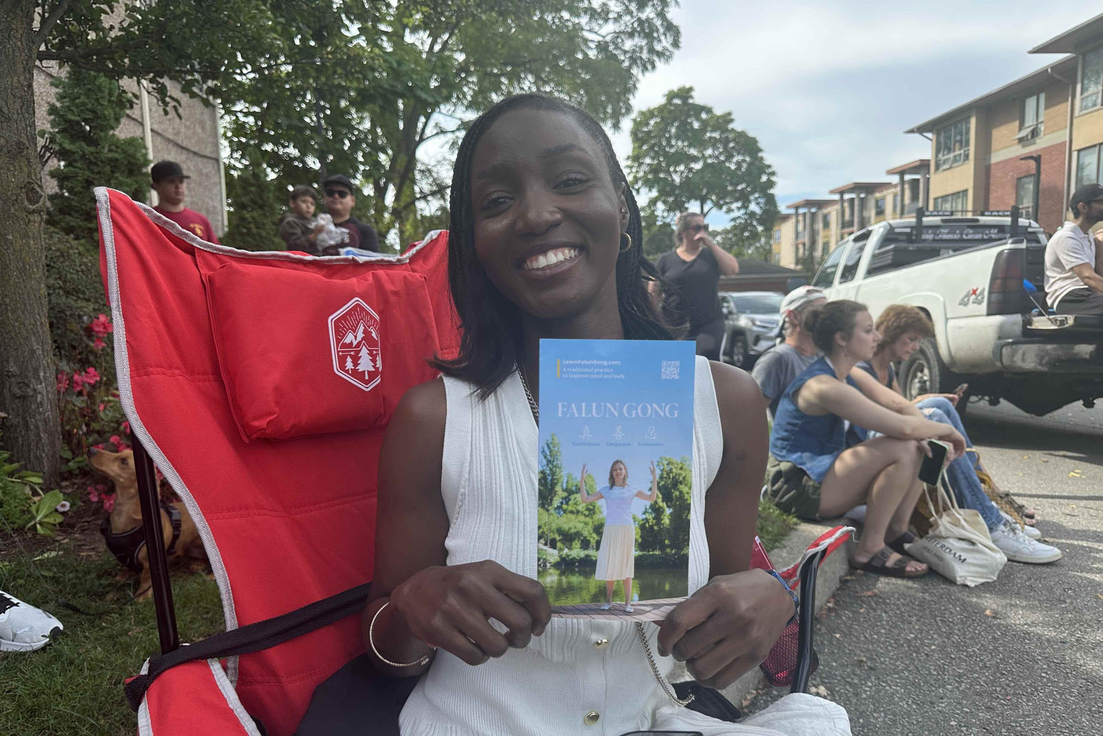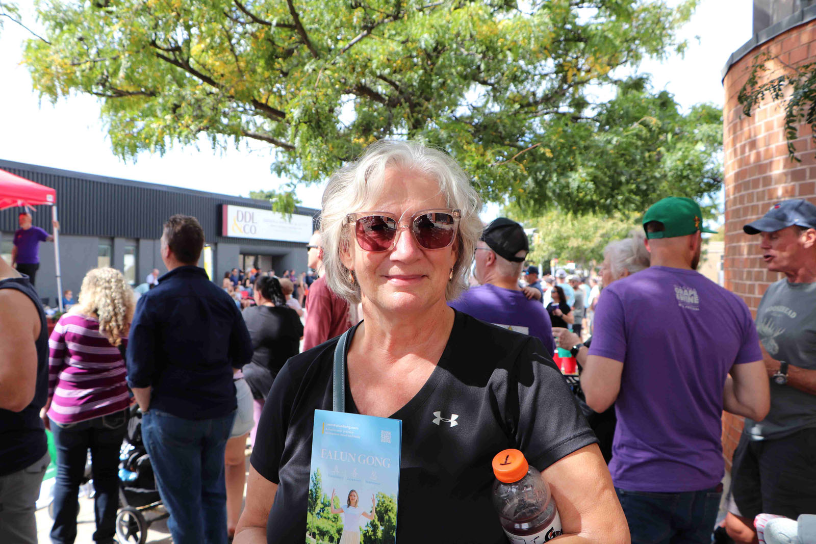 Trish said it was the first time she’s seen the Falun Gong group. She said, “I really enjoyed their performance and clapped along with the music. It was fantastic!” She learned that practicing Falun Gong can benefit one’s physical and mental health. She felt the principles of Truthfulness, Compassion, and Forbearance can benefit the world.