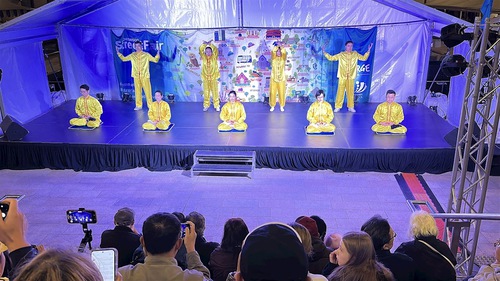 Event moderator Cassy Burgess introduced Falun Dafa and said it’s a peaceful practice whose guiding principles are Truthfulness, Compassion, and Forbearance, and practitioners practice five slow-moving exercises. Practicing Falun Dafa brings one inner peace, balance, and physical health. “I believe that in modern life, we need this kind of tranquility and balance even more. Please enjoy their wonderful performance,” she said