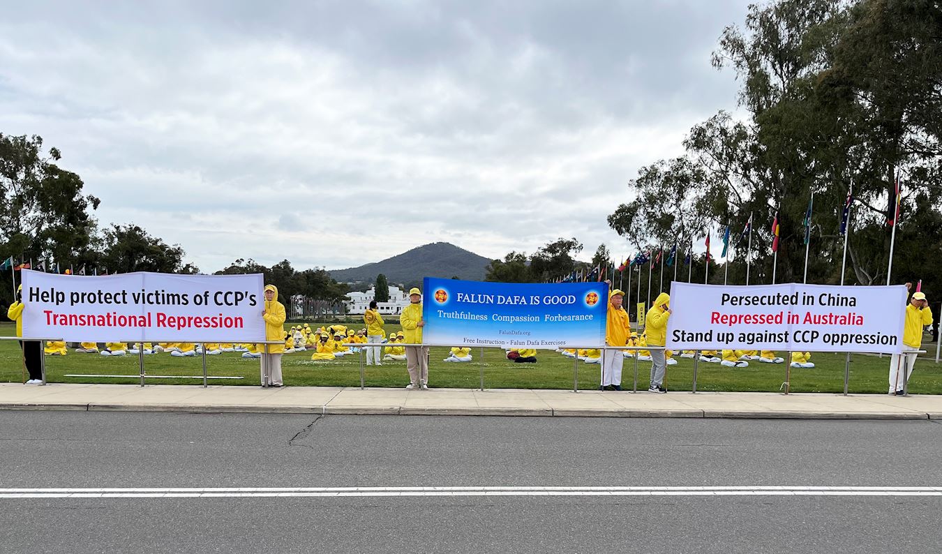(Minghui.org) Falun Gong practitioners from various parts of Australia gathered in Canberra, the capital city, outside Parliament House, on October 28, 2025, for a peaceful rally. This is one of a series of activities held over four days in Canberra, beginning on Monday October 27th, to expose organ harvesting and the escalating transnational repression by the Chinese Communist Party (CCP) that targets government organizations, federal members, and the public.