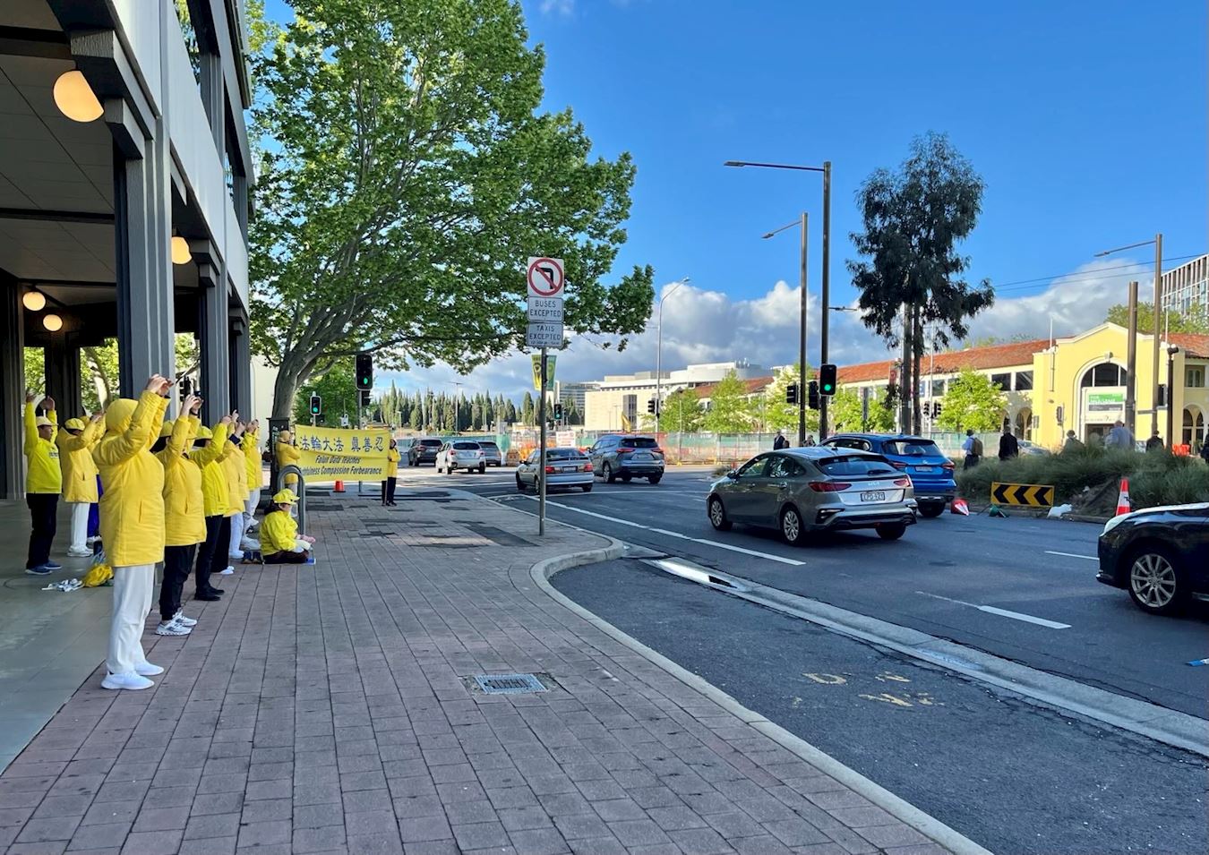 During the morning rush hour for several days in a row practitioners held banners, demonstrated the five sets of exercises, and collected signatures in downtown Canberra to stop organ harvesting.