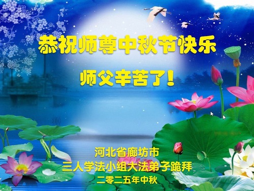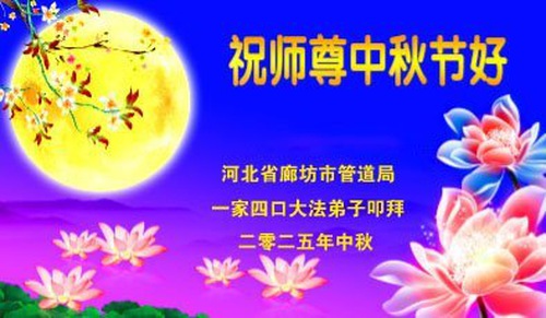 Falun Dafa Practitioners in Langfang City Respectfully Wish Master Li Hongzhi a Happy Mid-Autumn Festival (19 Greetings)