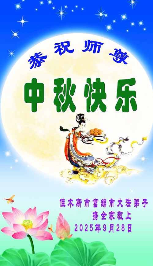 Falun Dafa Practitioners from Jiamusi City Respectfully Wish Master Li Hongzhi a Happy Mid-Autumn Festival (18 Greetings)