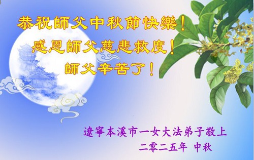 Falun Dafa Practitioners from Benxi City Respectfully Wish Master Li Hongzhi a Happy Mid-Autumn Festival (18 Greetings)