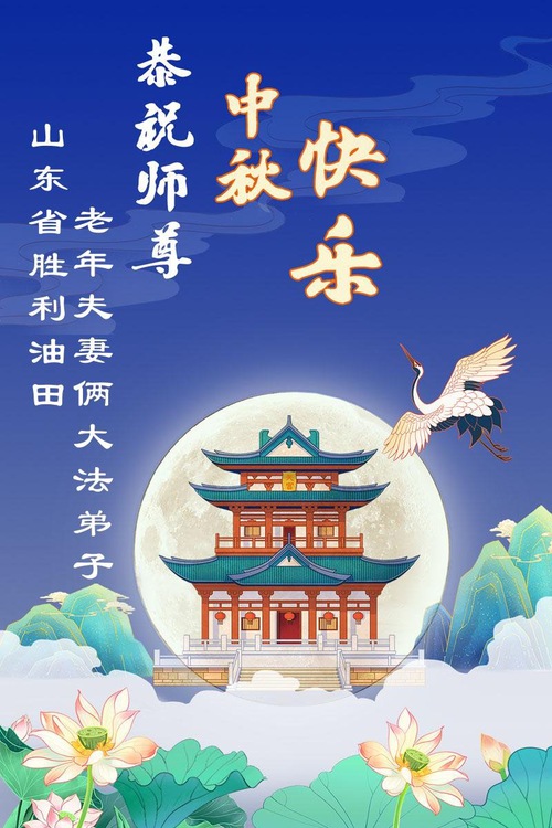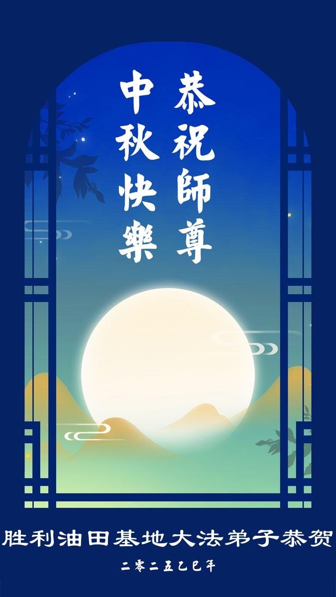 Practitioners in Dongying City and Shengli Oilfield in Shandong Province wish Master a happy Mid-Autumn Festival. The greeting reads: “With the coming of the Mid-Autumn Festival, we disciples are grateful for Master’s boundless compassion. We will follow Master’s teachings and treasure more this precious opportunity. We will move forward with righteous thoughts and walk well the final leg of the journey courageously and diligently.”