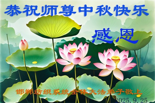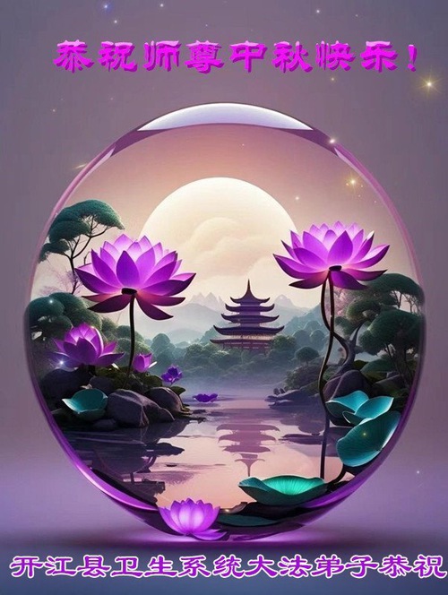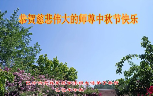 Practitioners in the Bazhong City Government in Sichuan Province wish Master a happy Mid-Autumn Festival. The greeting reads: “Master, thank you for your hard work! You have saved your disciples, purified our minds and bodies, and guided us to validate the Fa by doing the three things well, walking the sacred path of cultivation. You have endured endless hardships for all sentient beings. Your boundless compassion has dispelled the haze and illuminated the universe. We have nothing but endless gratitude for Master!”