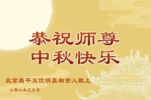 (Minghui.org) To celebrate the 2025 Mid-Autumn Festival, supporters of Falun Dafa across China are sending in their heartfelt greetings to Master Li Hongzhi, the founder of Falun Dafa, to wish him a happy Mid-Autumn Festival.