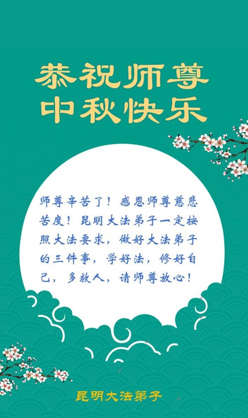 Falun Dafa Practitioners from Yunnan, Guizhou and Sichuan Provinces Respectfully Wish Master Li Hongzhi a Happy Mid-Autumn Festival (116 Greetings)