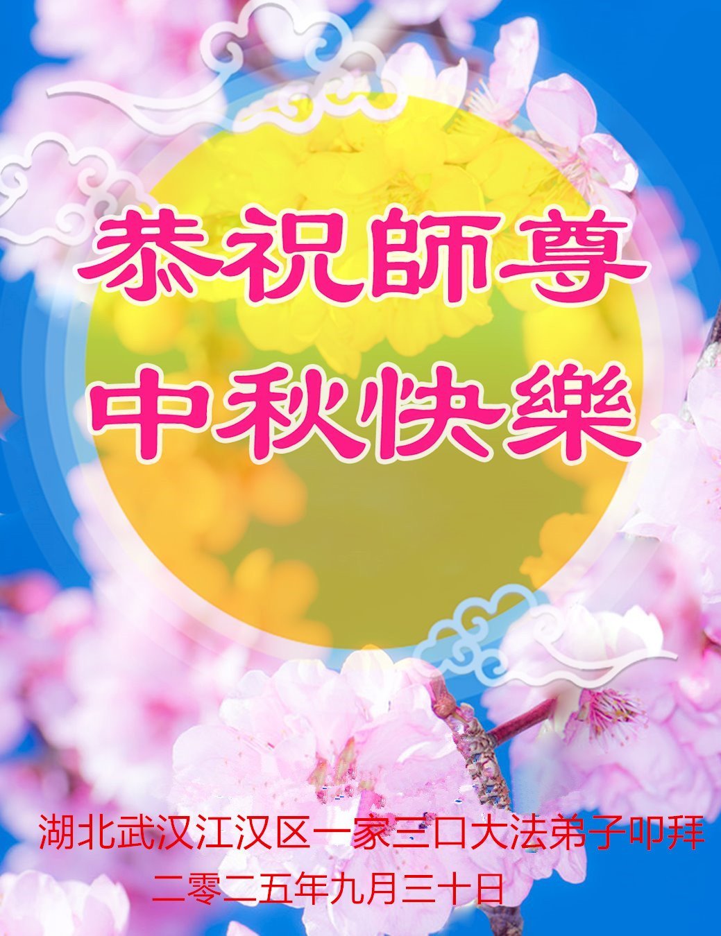 Falun Dafa Practitioners from Hubei Province Respectfully Wish Master Li Hongzhi a Happy Mid-Autumn Festival (79 Greetings)