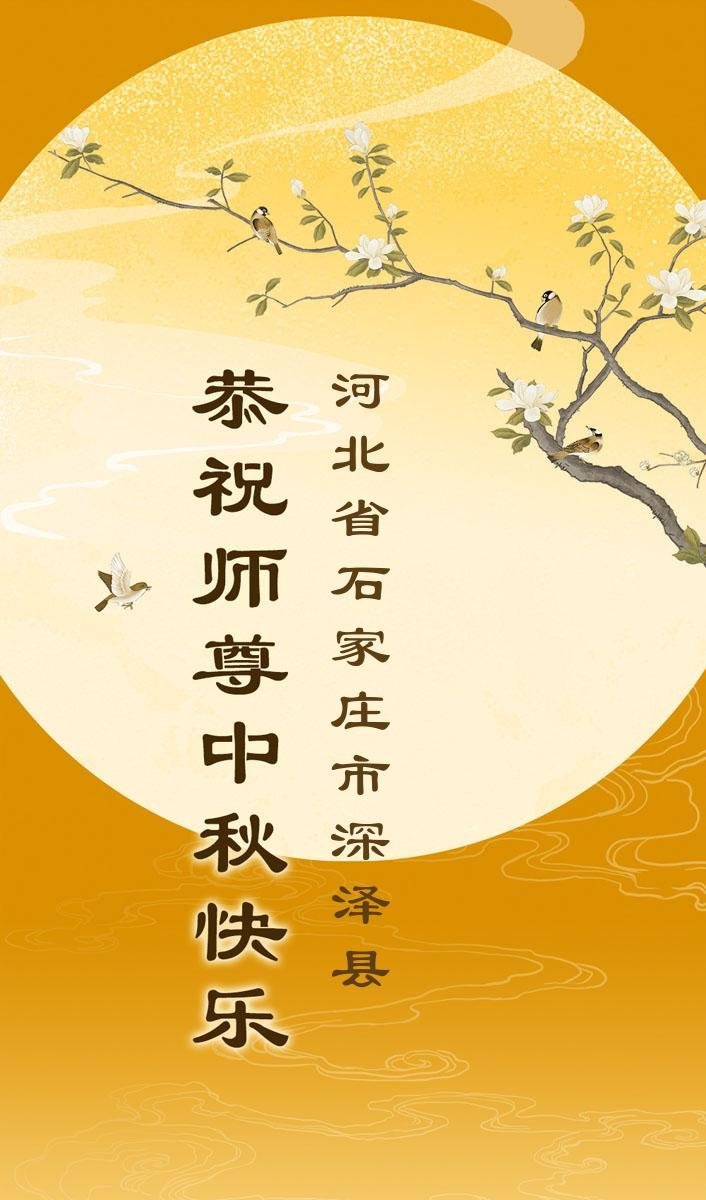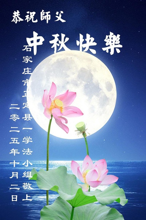 Falun Dafa Practitioners from Shijiazhuang City Respectfully Wish Master Li Hongzhi a Happy Mid-Autumn Festival (100 Greetings)