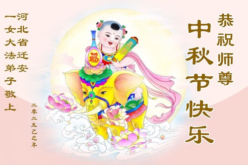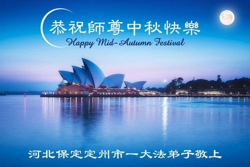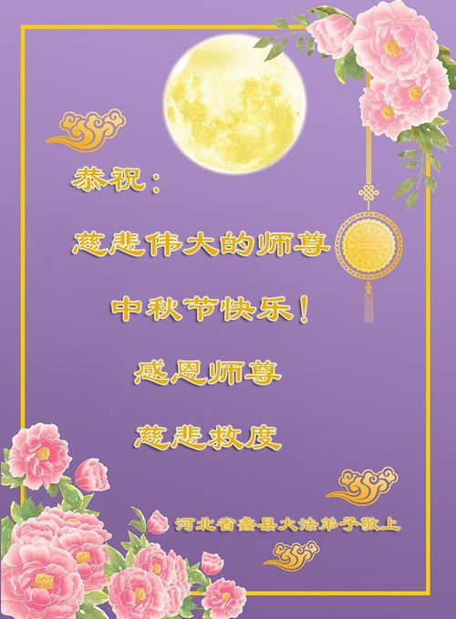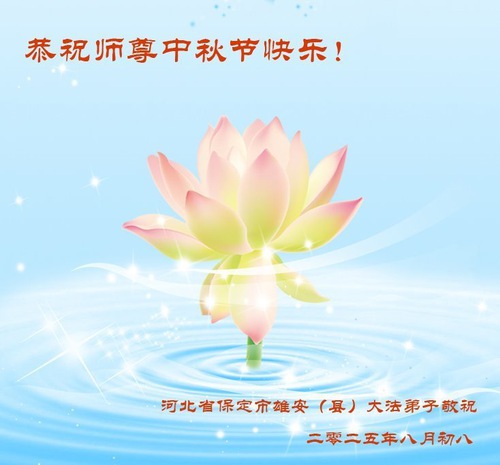 Falun Dafa Practitioners in Baoding and Tangshan Cities City Respectfully Wish Master Li Hongzhi a Happy Mid-Autumn Festival (91 Greetings)
