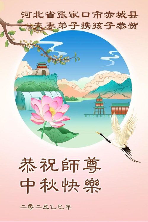 Falun Dafa Practitioners in Shijiazhuang, Zhangjiakou and Langfang Cities Respectfully Wish Master Li Hongzhi a Happy Mid-Autumn Festival (88 Greetings)