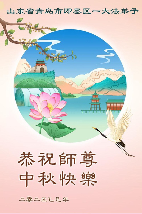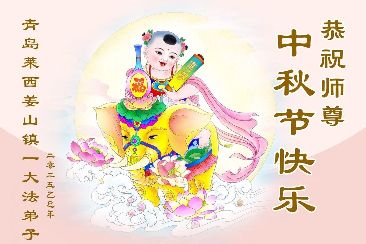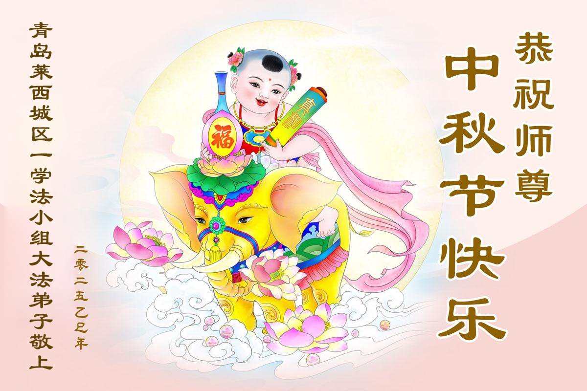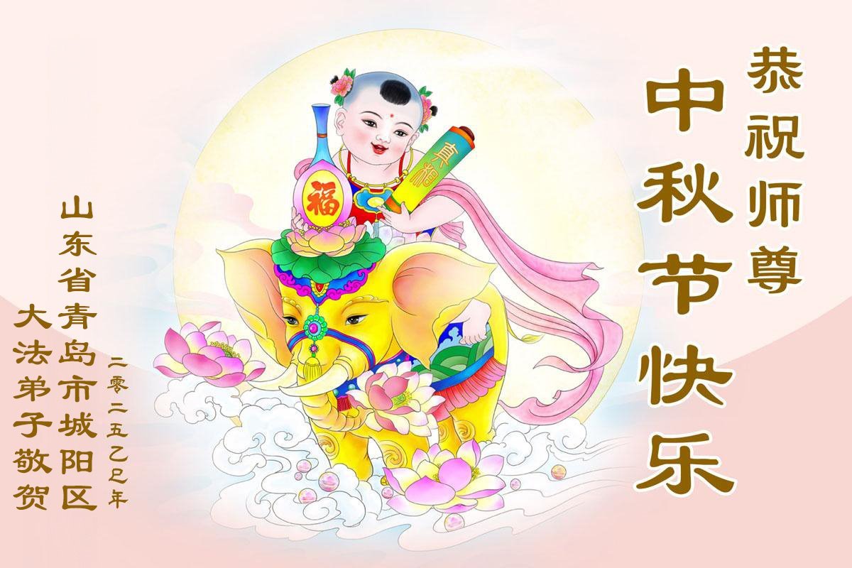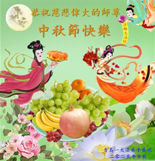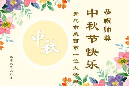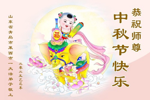 Falun Dafa Practitioners in Qingdao Respectfully Wish Master Li Hongzhi a Happy Mid-Autumn Festival (96 Greetings)