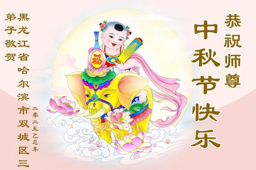 Falun Dafa Practitioners in Harbin and Daqing Respectfully Wish Master Li Hongzhi a Happy Mid-Autumn Festival (105 Greetings)