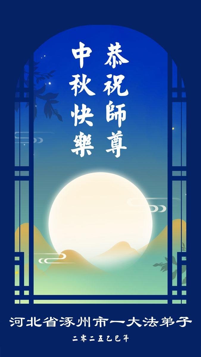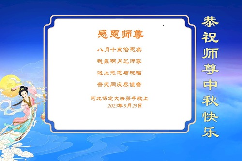 Falun Dafa Practitioners from Baoding City Wish Revered Master a Happy Mid-Autumn Festival!