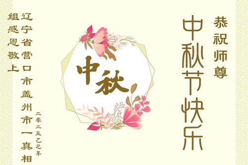 Falun Dafa Practitioners in Liaoning Province Respectfully Wish Master Li Hongzhi a Happy Mid-Autumn Festival (101 Greetings)