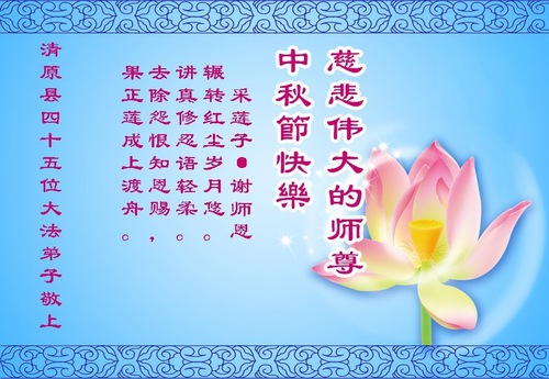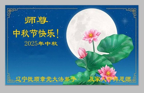 Falun Dafa Practitioners from Cities/Towns/Areas of Anshan, Fuxin, Liaoyang, and Fushun Wish Revered Master a Happy Mid-Autumn Festival!