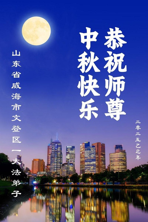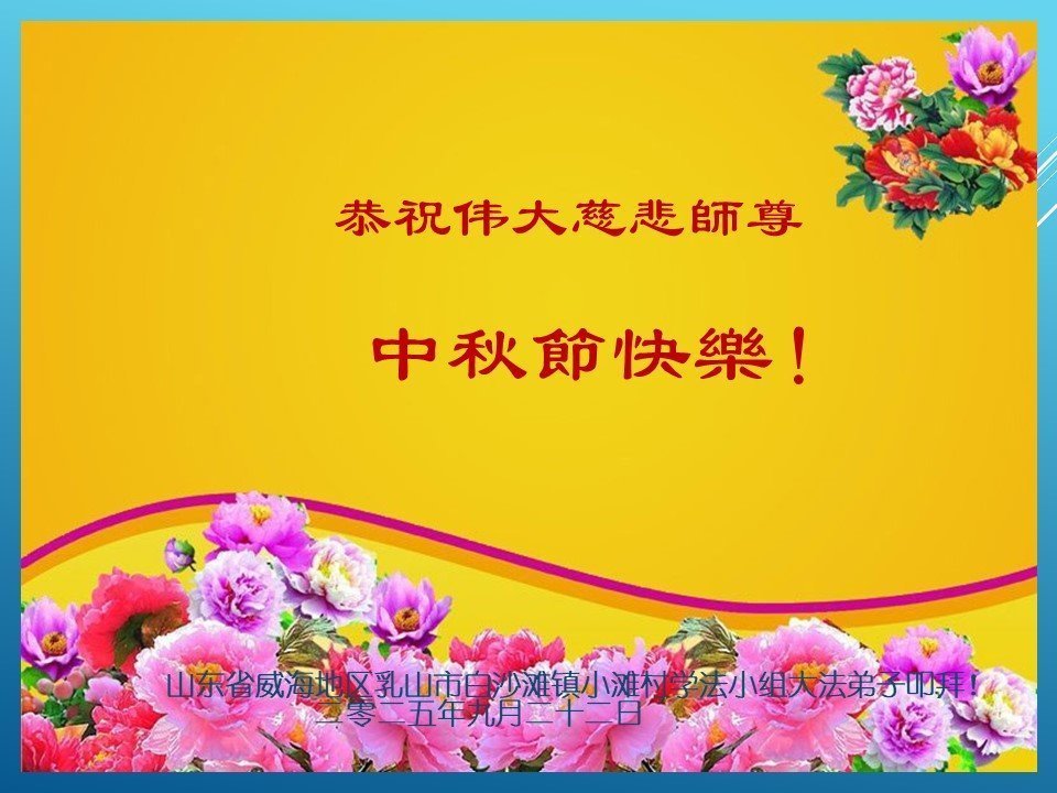 Falun Dafa Practitioners from Cities/Towns/Areas of Weihai, Tai’an, Yantai, and Liaocheng, Shandong Province, Wish Revered Master a Happy Mid-Autumn Festival!