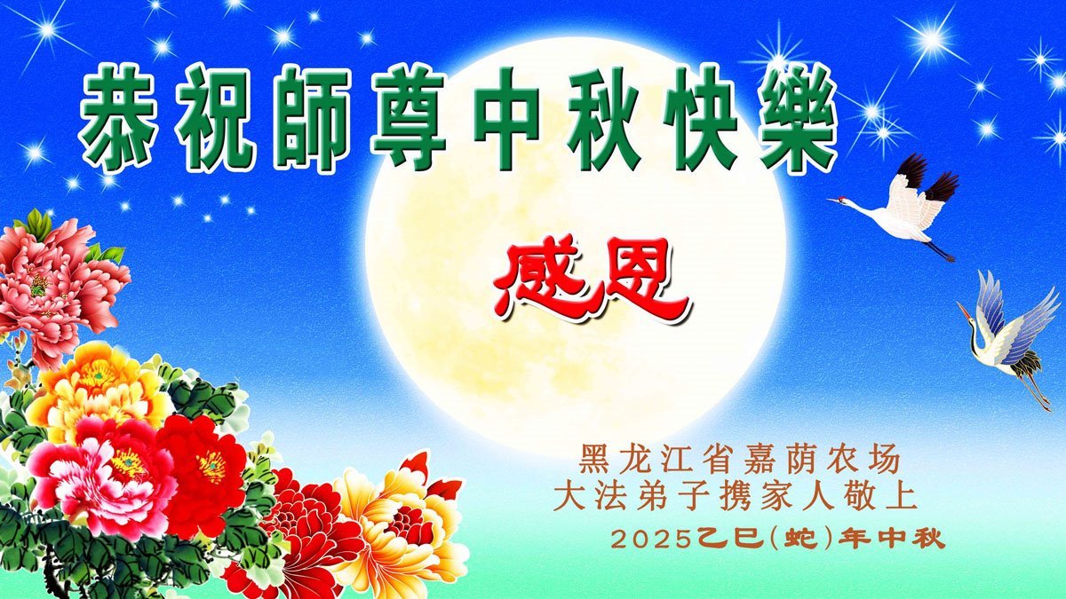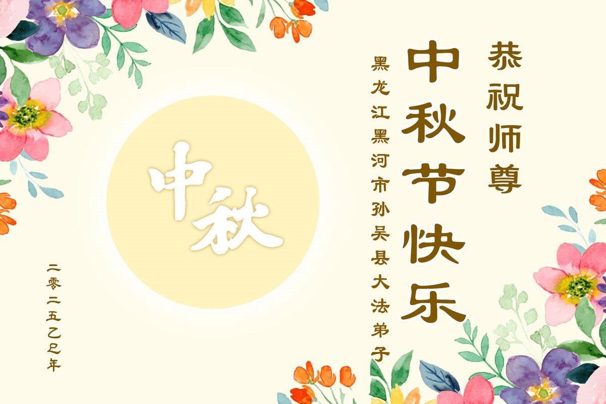 Falun Dafa Practitioners from Cities/Towns/Areas of Mudanjiang, Heihe, Jiansanjiang, and Qiqihar, Heilongjiang Province, Wish Revered Master a Happy Mid-Autumn Festival!