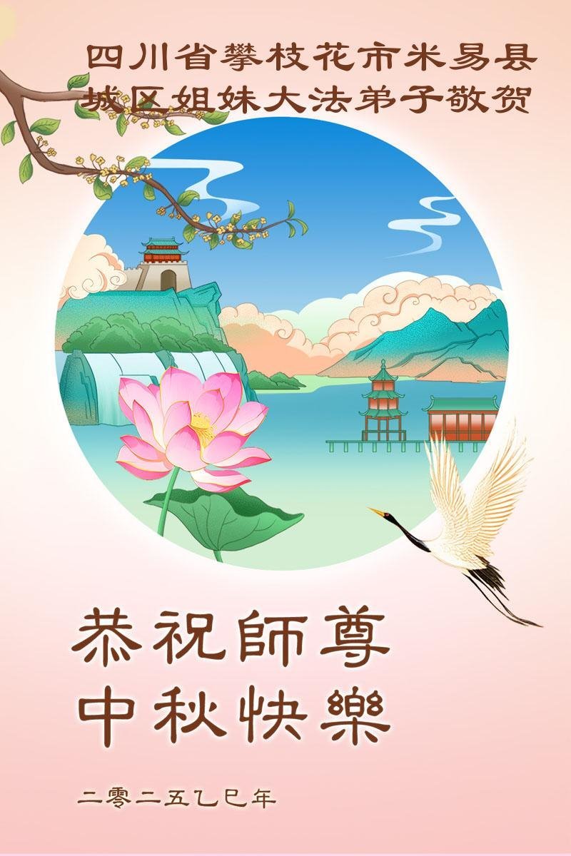 Falun Dafa Practitioners from Cities/Towns/Areas of Panzhihua, Dazhou, Shifang, and Deyang Wish Revered Master a Happy Mid-Autumn Festival!