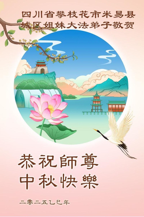 Falun Dafa Practitioners from Sichuan Province Respectfully Wish Master Li Hongzhi a Happy Mid-Autumn Festival (100 Greetings)