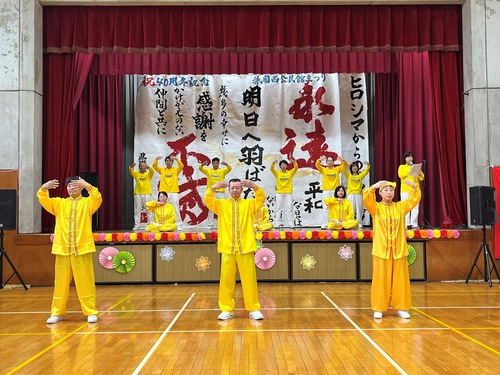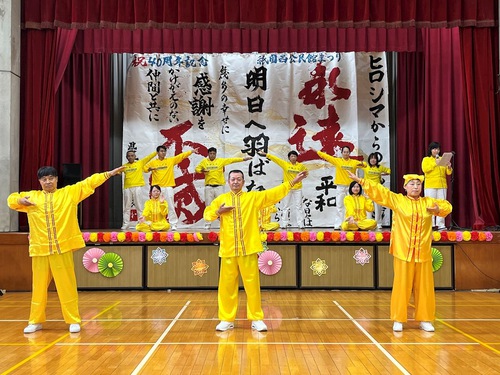 (Minghui.org) Falun Dafa practitioners participated in the Gionnishi Community Center celebration in Hiroshima, Japan, on November 9, 2025. The event marked the community center’s 40th anniversary. Besides stage performances, there were special food stalls, handicrafts, and various goods where many residents attended.