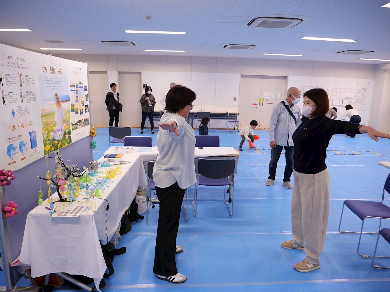 Practitioners taught the exercises and talked with visitors at the Goen Rakuichi Fair.