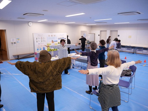 Ms. Yamada (first from the left, wearing beige) learned the exercises.