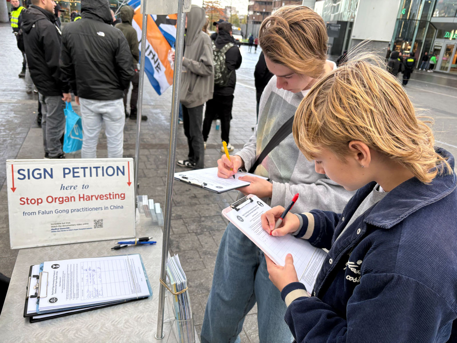 “I think that everyone deserves to lead a normal life, especially people who are just meditating quietly. And if they are then murdered by taking their organs or executed, I think that’s a bad thing. So I wanted to sign,” said Reichert. Van Voorthuizen agreed with him, and said that the CCP’s persecution is “Very bad.”