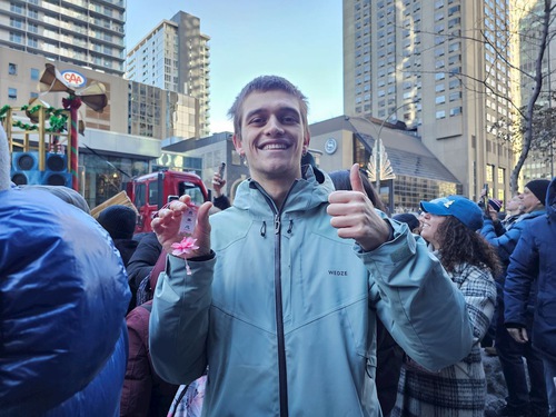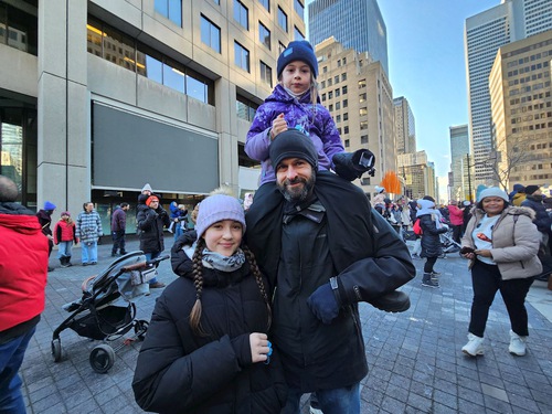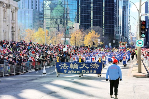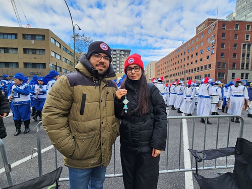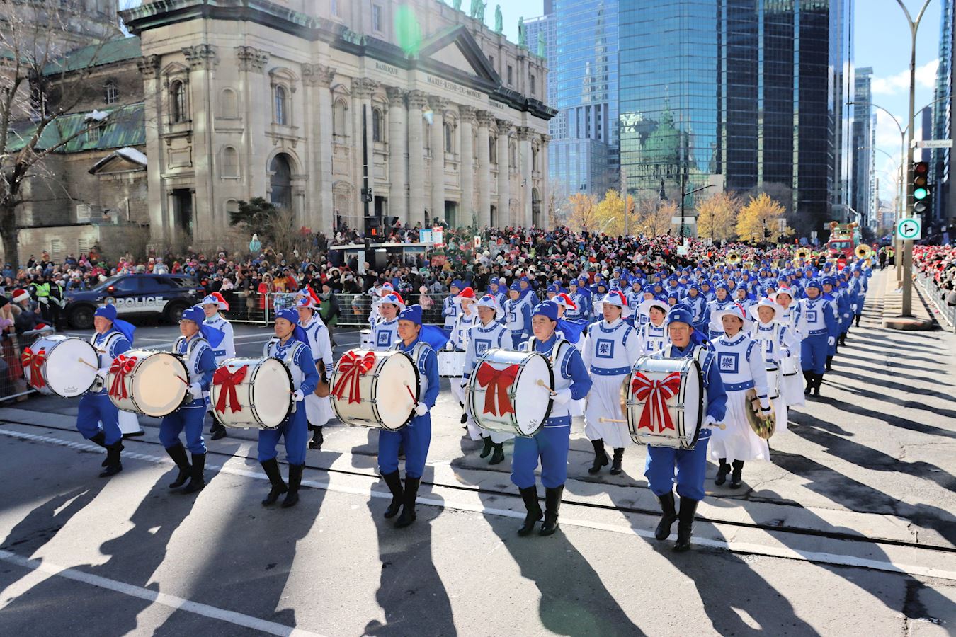 (Minghui.org) The Christmas Parade, the biggest celebration in Montreal, was held on November 22, 2025. The Tian Guo Marching Band participated in the popular annual event and was welcomed by spectators.