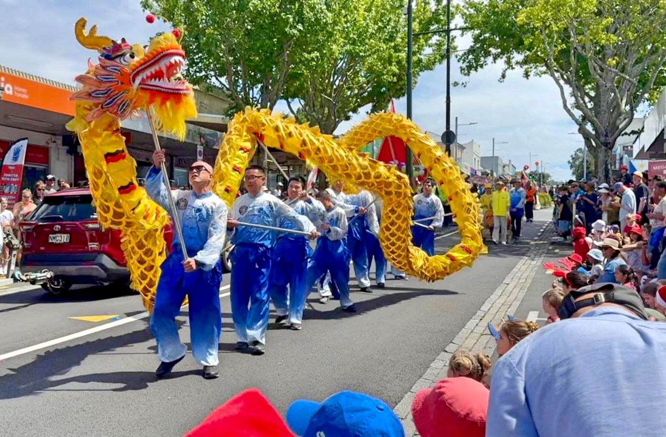 The dragon dance team participated in the Christmas parade in Onehunga of Auckland, on November 22, 2025.