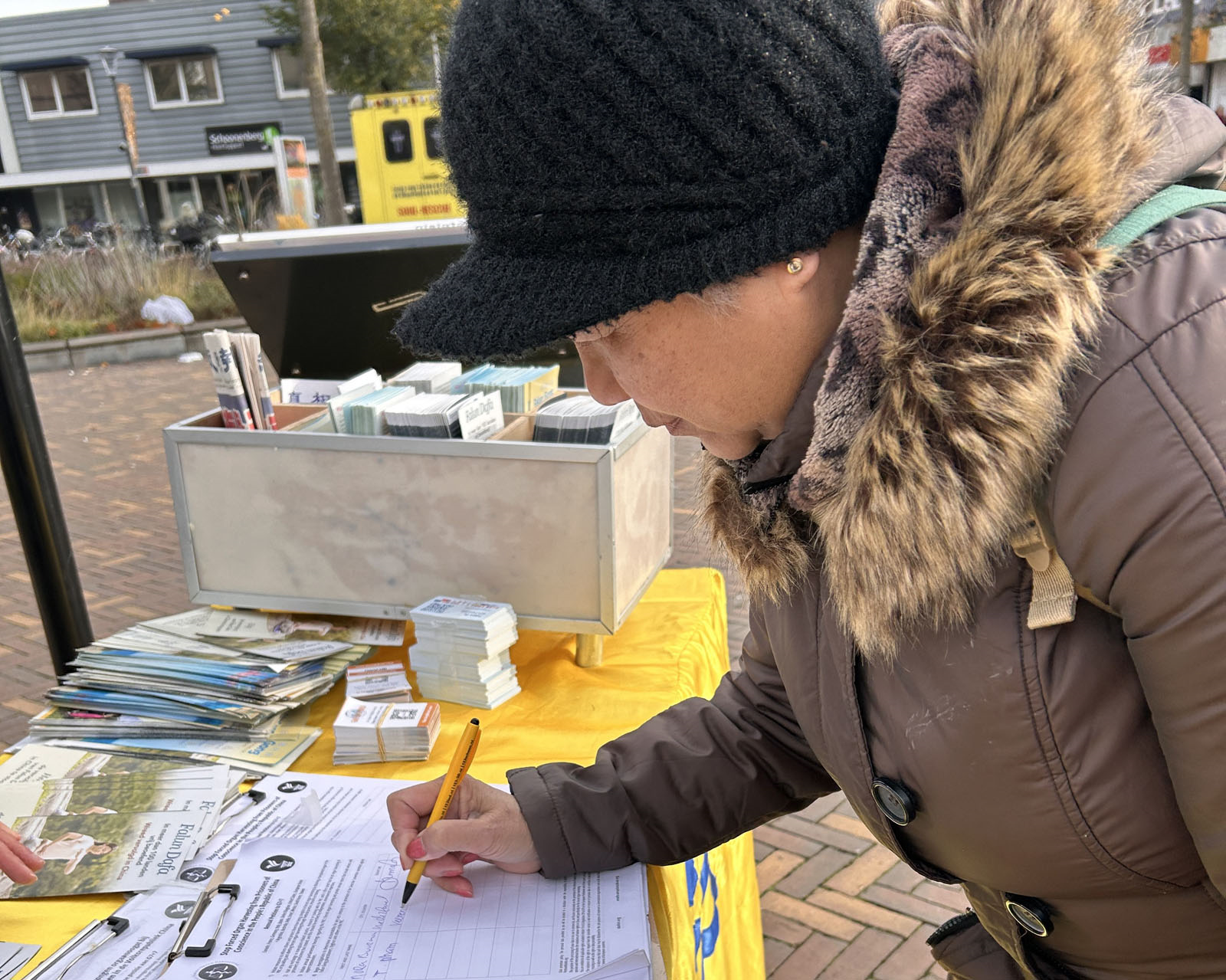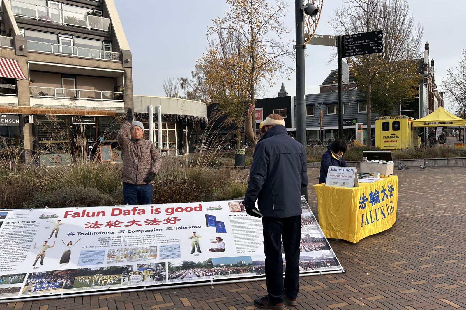 (Minghui.org) Falun Dafa practitioners introduced the spiritual practice at Veenendaal on November 22, 2025. Veenendaal is located in the middle of the Netherlands. It is administered by the Utrecht Province, was founded in the 16th century, covers an area of 19 square kilometers, and has a population of about 62,000.