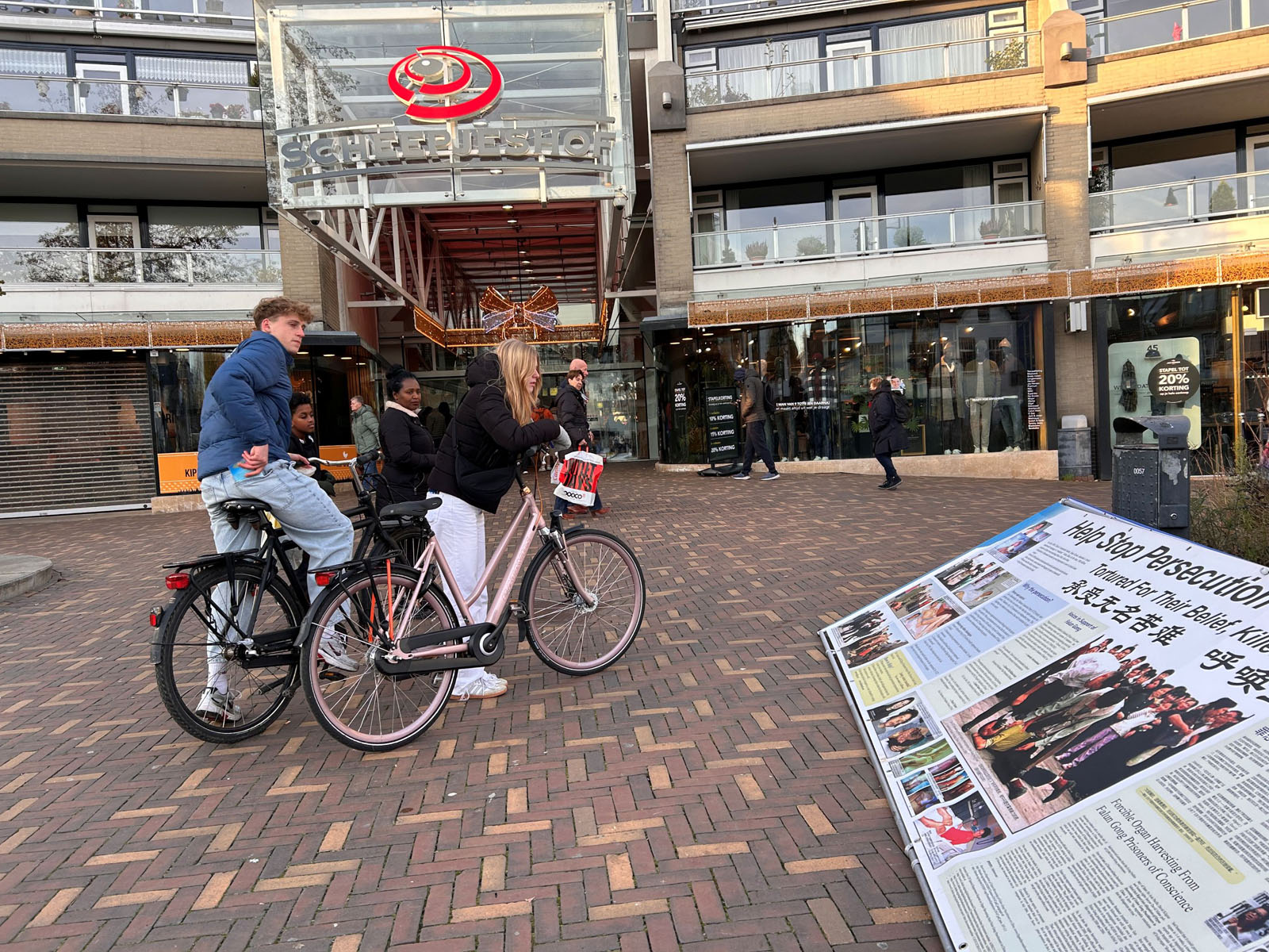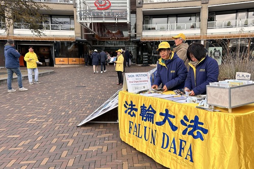 The practitioners set up display boards on Hoogstraat at around noon on November 22. They demonstrated the exercises, distributed flyers, and talked about the Chinese Communist Party’s (CCP) 26-year persecution in China. People signed a petition calling for a stop to the CCP’s persecution and state-sanctioned forced organ harvesting atrocity.