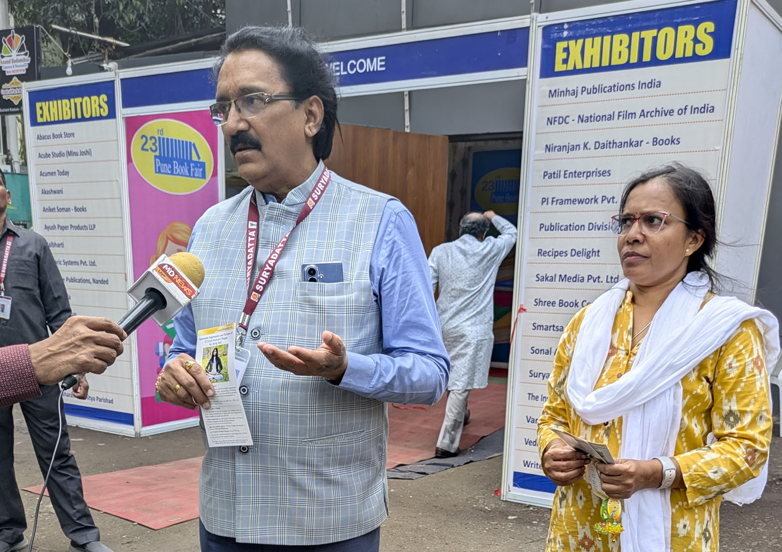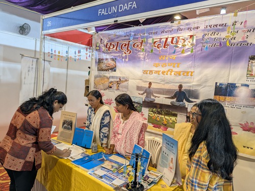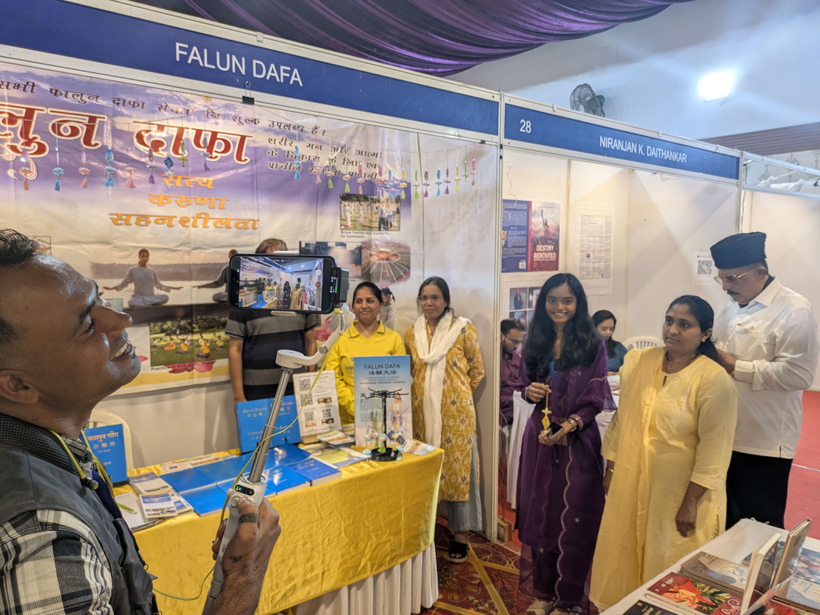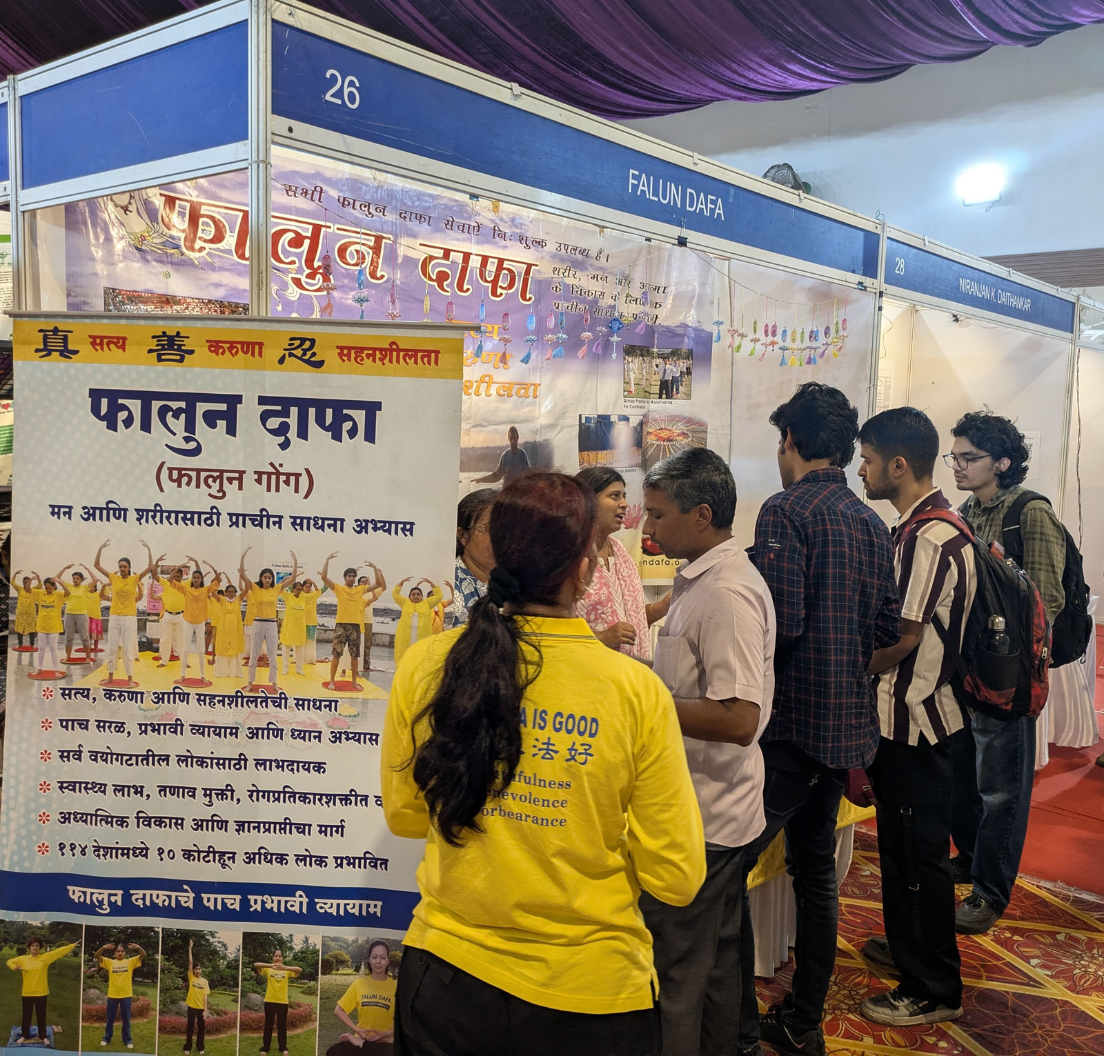 (Minghui.org) Falun Dafa practitioners participated in the 23rd annual Pune Book Fair, which took place from October 30 to November 2, 2025. This event is Western India’s largest book, culture, and education fair, and was organized by the Expo Centre with the support of the Education Department of the Government of Maharashtra and the Suryadatta Group of Institutes.