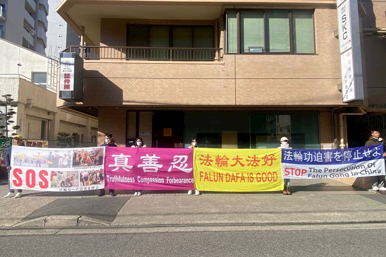 Practitioners held banners outside the Chinese consulate in Nagoya on December 6.