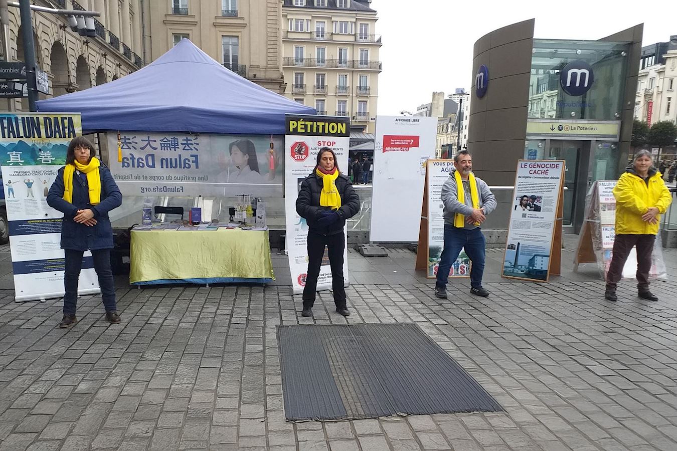 Practitioners held an information day event at Place de la République in Rennes, the capital of Brittany in northwest France, on December 6. The event drew many passersby, many of whom took photos of the event and information boards.
