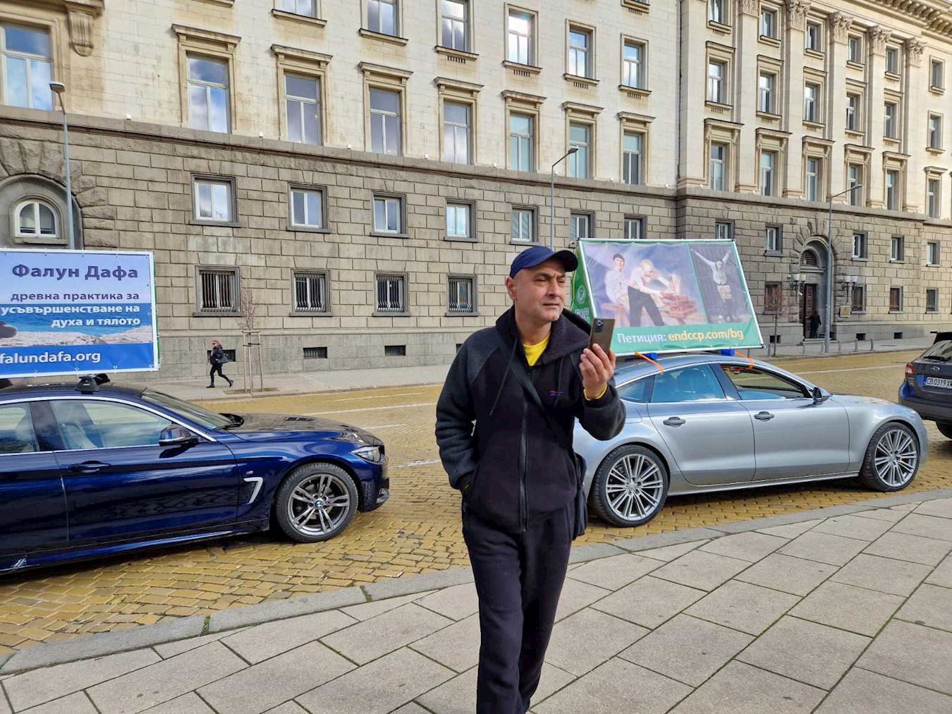 The banners on the cars, written in Bulgarian, included the following messages: “The CCP Uses Torture and Murder to Destroy Falun Gong,” “The CCP Is Carrying Out Large-Scale Medical Genocide,” “The CCP’s Goal Is World Domination. Enslavement and Plunder, Disguised as Investment,” “The CCP Harvests Organs From Falun Dafa Practitioners,” “To Stop the Killings—End the CCP!”
