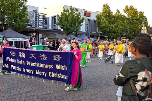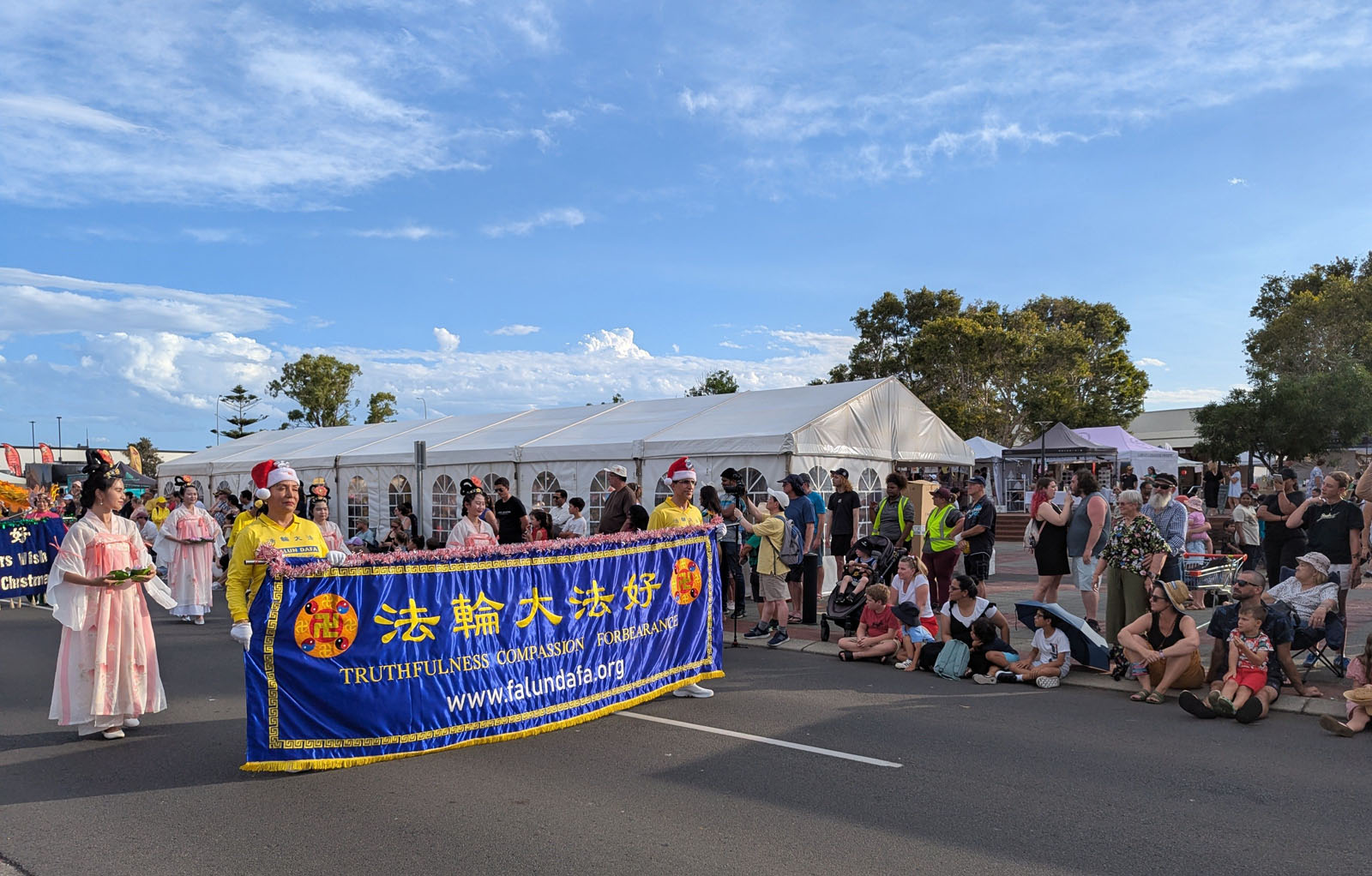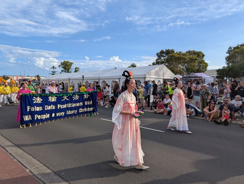 (Minghui.org) Falun Dafa practitioners in Western Australia participated in two Christmas Parades at the end of 2025. They set up a booth and participated in the Parade in Ellenbrook on December 13. The next day they joined the parade in Bunbury, in which they won the first place in the Walking Group category.